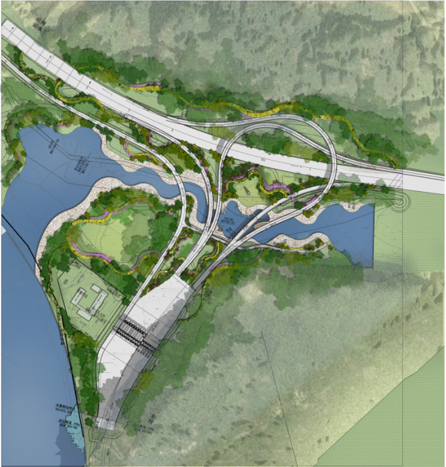 諸永高速公路景觀綠化設(shè)計 規(guī)劃目標(biāo):以“奏響山水楠溪序曲、展現(xiàn)時尚三江窗口”為目標(biāo),打造一條具有永嘉特色的景觀帶。諸永延伸段是溫州北面進(jìn)入永嘉展現(xiàn)三江的窗口,也是奏響魅力楠溪美麗交響樂的序曲。